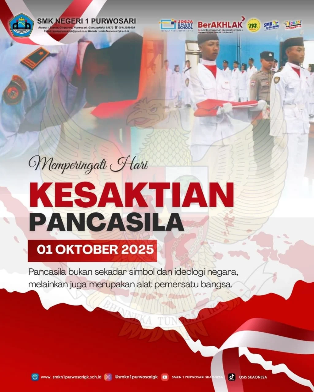 Melalui peringatan ini, diharapkan seluruh warga sekolah semakin memahami dan mengamalkan nilai-nilai Pancasila dalam kehidupan sehari-hari. SMK N 1 Purwosari berkomitmen untuk terus menanamkan semangat kebangsaan, persatuan, dan cinta tanah air kepada seluruh siswanya sebagai generasi penerus bangsa.